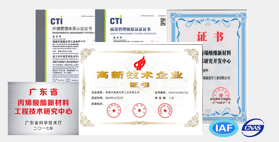 瑞晟新材料,成立于2005年,系專業(yè)從事綠色環(huán)保材料研發(fā),生產(chǎn)和銷售的高科技企業(yè)。主要產(chǎn)品包括水性UV樹脂,聚氨酯丙烯酸酯、改性環(huán)氧丙烯酸酯、丙烯酸樹脂,特殊改性聚酯樹脂以及其他特殊新材料等,年產(chǎn)量可達一萬噸。產(chǎn)品用途廣泛,涉獵眾多,主要應(yīng)用于智能家電、智能穿戴、智能家居,汽車內(nèi)外飾,工程機械等。占地50畝,是專業(yè)從事新材料研發(fā)、生產(chǎn)和銷售的國家高新技術(shù)企業(yè)和廣東省專精特新中小企業(yè)。主要產(chǎn)品包括水性UV樹脂、聚氨酯丙烯酸酯、丙烯酸樹脂、聚酯樹脂、無機納米水性陶瓷樹脂以及其他特殊新材料等,年產(chǎn)量可達一萬噸。產(chǎn)品用途廣泛,符合當(dāng)前環(huán)保要求。涉及產(chǎn)業(yè)眾多,主要應(yīng)用于:3C(手機、筆記本電腦等)、汽車內(nèi)飾、家電家具、工程機械、市政工程等。